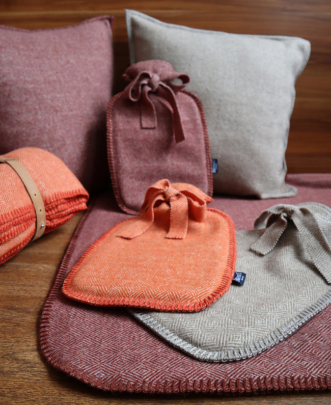 Kuschelige Wärmflasche mit Bezug aus weicher Merinowolle, erhältlich in verschiedenen Farben